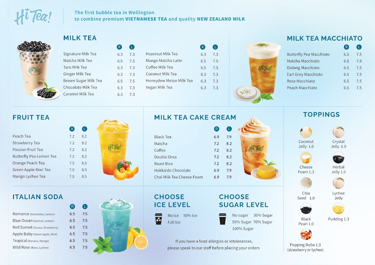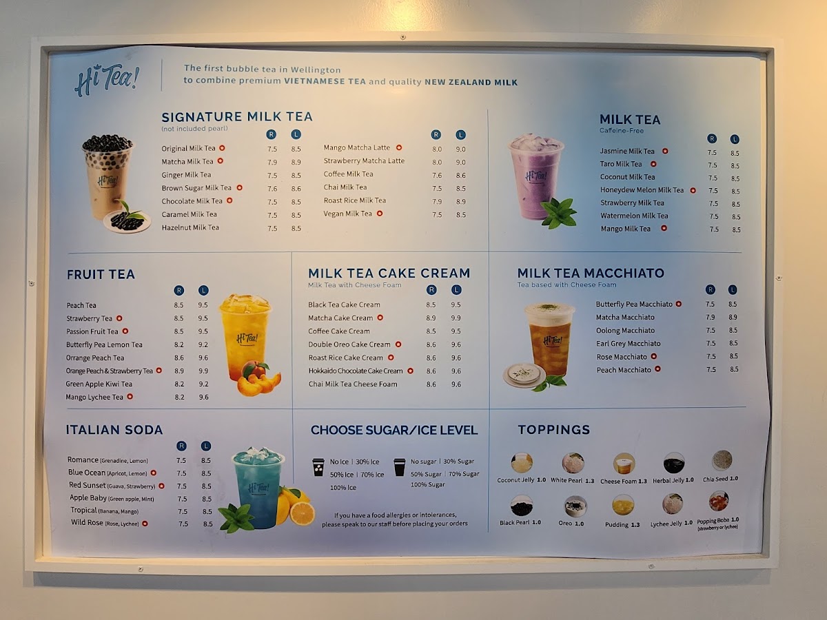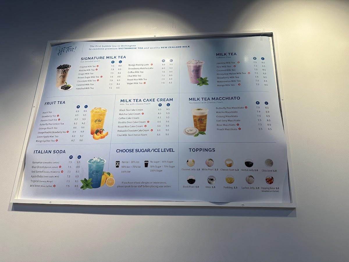 The menu at Hi Tea! on 16 Lombard Street in Te Aro offers a delightful balance of vibrant beverages and decadent sweets, each crafted with care and creativity. Signature drinks like the Mango Matcha Latte and Oolong Milk Tea and Vietnamese Coffee with Cheese showcase a playful blend of flavors that are both visually appealing and satisfying to the palate. Fruity favorites such as Strawberry Milk Tea and Passionfruit Tea with Apple provide a refreshing twist on classic tea offerings, while the dessert selection, including Oreo Macaron and Hokkaido Chocolate Cake Cream, delivers indulgent textures and rich, nuanced tastes. The Hot Chocolate Milk Tea with Cream Cheese stands out as a comforting treat that marries sweetness with a hint of tangy creaminess, reflecting the restaurant’s attention to layering flavors. Overall, Hi Tea!’s menu is thoughtfully curated, offering an engaging experience for those who appreciate inventive drinks and meticulously crafted desserts, making it a must-visit destination for both casual tea lovers and dessert enthusiasts alike.